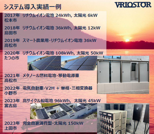 台灣微網日本海外業務,目前與 VRIOSTOR 合作,提供儲能、氫燃料電池等設備硬體、系統設計及工程服務。